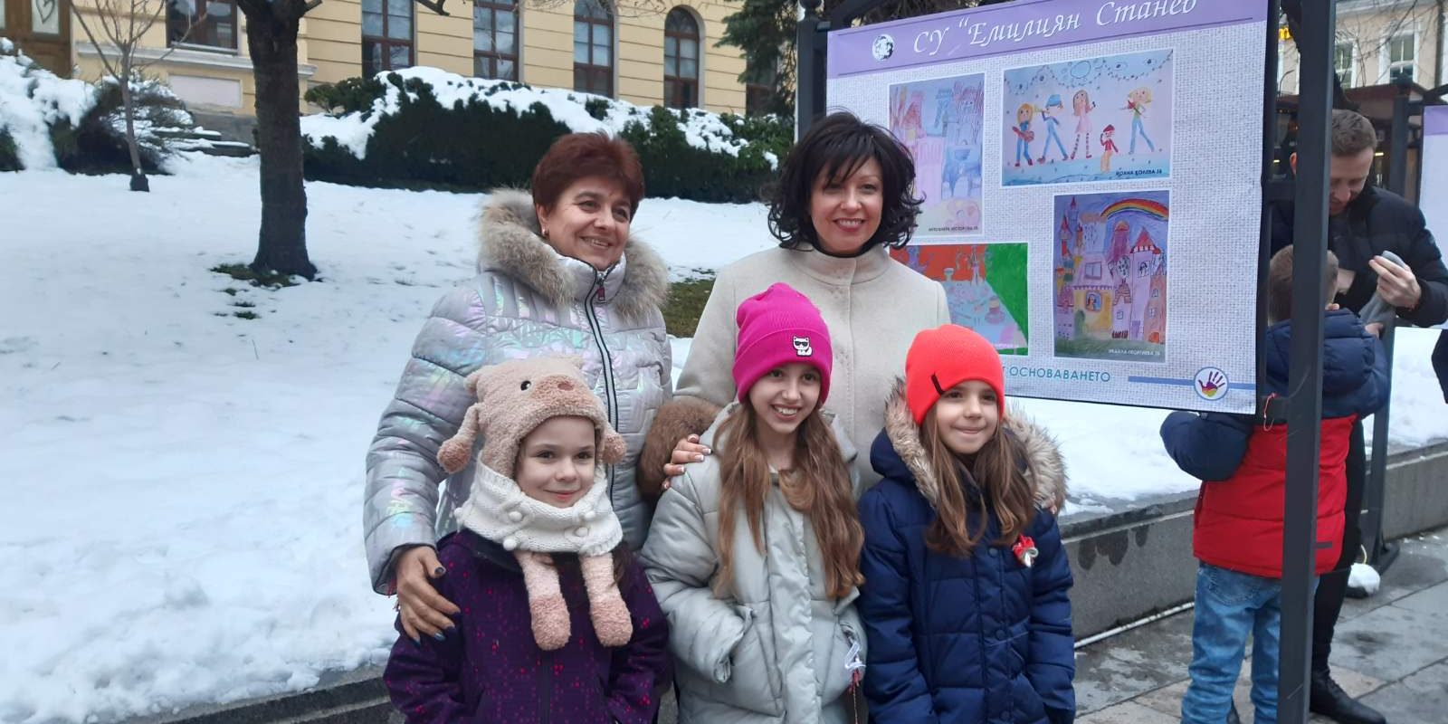 Творбите са експонирани на открито пред Факултета по изобразително изкуство, а събитието уважиха още зам.-кметът на старата столица по хуманитарните дейности Нейко Генчев, директорката на СУ „Ем. Станев“ Кина Котларска, граждани, учители и ученици.