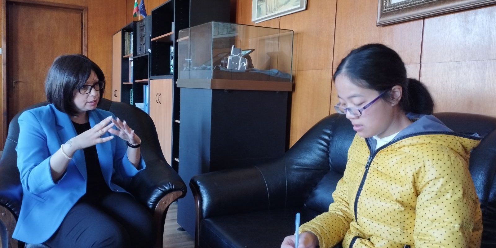 26-годишната докторантка по политология от Бирмингамския университет – китайката Ю Сян Лин се срещна с областния управител Людмила Илиева, за да разбере повече за същността на държавното устройство и партийната система в България. Младата жена пише дисертация на тема „Устойчивостта на партиите в България след 1989 г.“ , в която изследва спецификите на управлението в страната, дейността на правителството и областните администрации, както и характеристиките на българския политически живот. Ю Сян Лин вече е разговаряла по темата с местни политически лидери и представители на държавата в София и Благоевград, а във Велико Търново й предстоят няколко срещи в различни партийни централи.