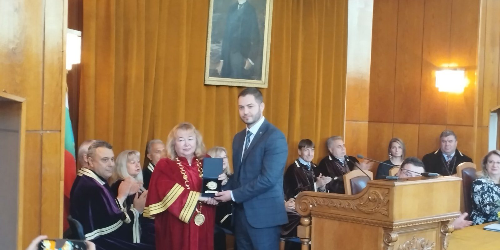 Той бе удостоен с почетен знак на Стопанската академия от ректора й проф. д-р Марияна Божинова.