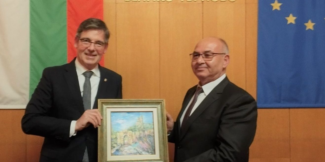 В края на визитата бяха разменени протоколни подаръци, а посланикът получи пейзаж на хълма „Царевец“ от талантливата художничка Павла Коларова.