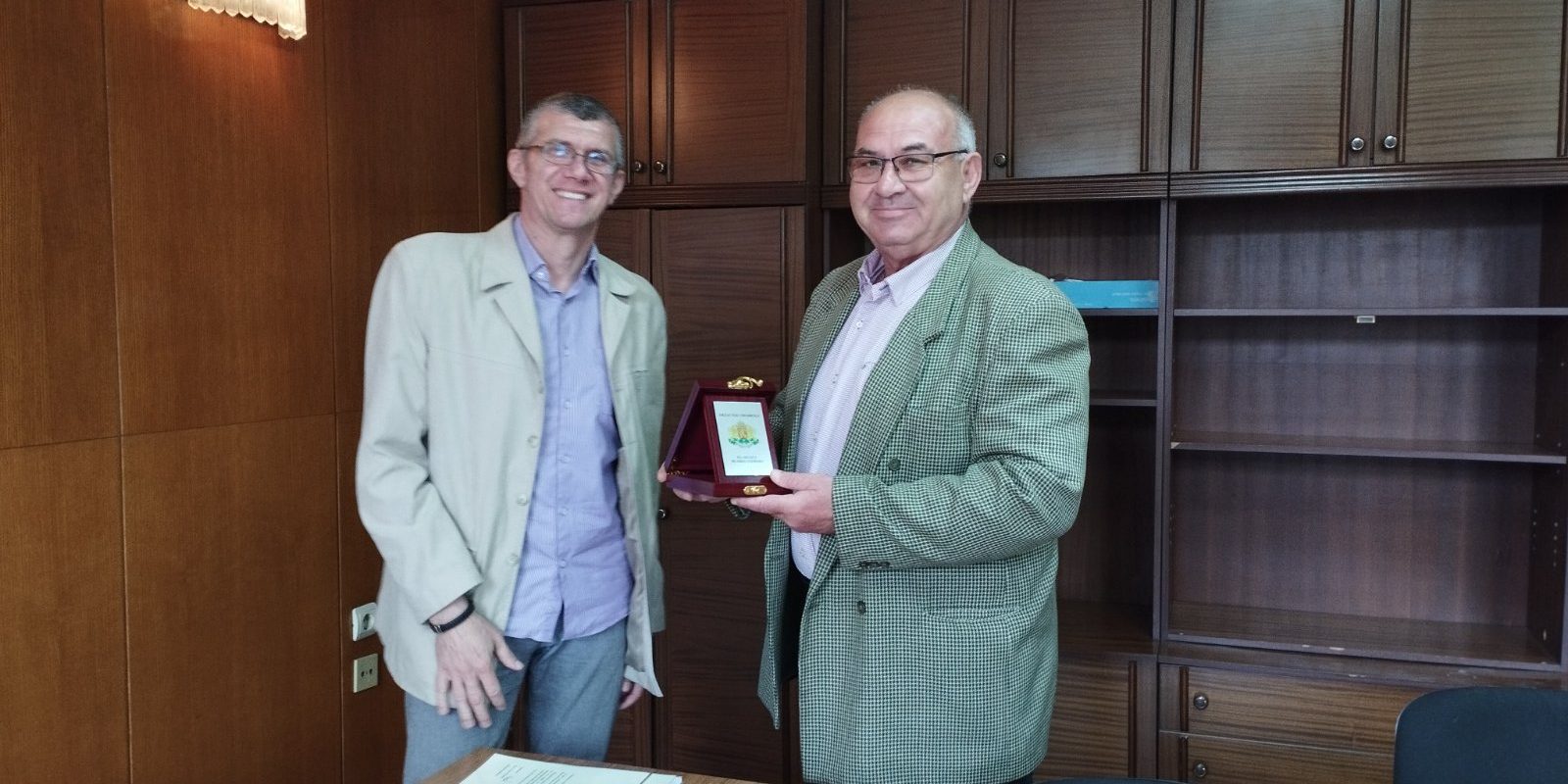 Областният управител инж. Георги Гугучков връчи почетен плакет в знак на благодарност за добрата съвместна работа с Областната организация на Съюза на ветераните от войните в България.