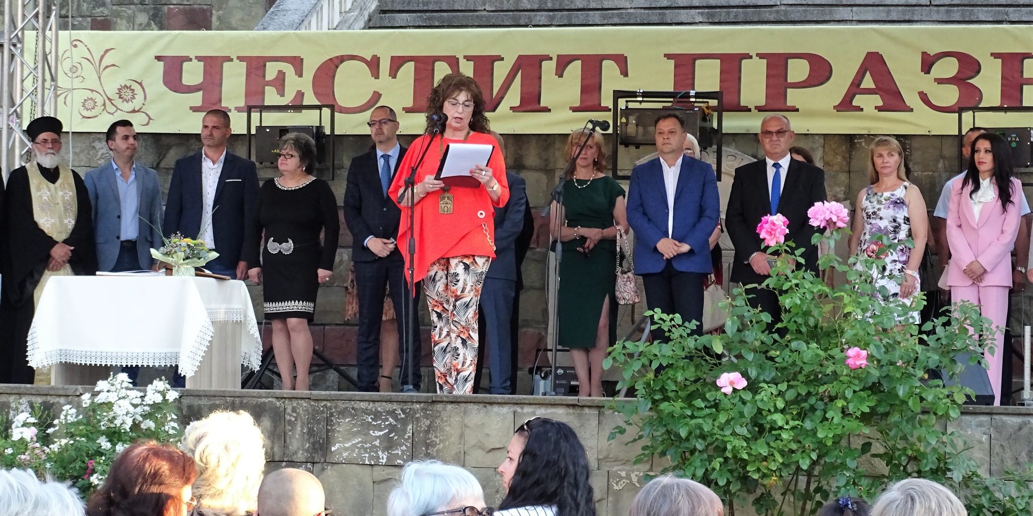 Тържеството за празника се проведе на централния площад, където се бяха събрали стотици граждани и официални гости, сред които кметове от областта, депутати от региона, представители на различни институции.
