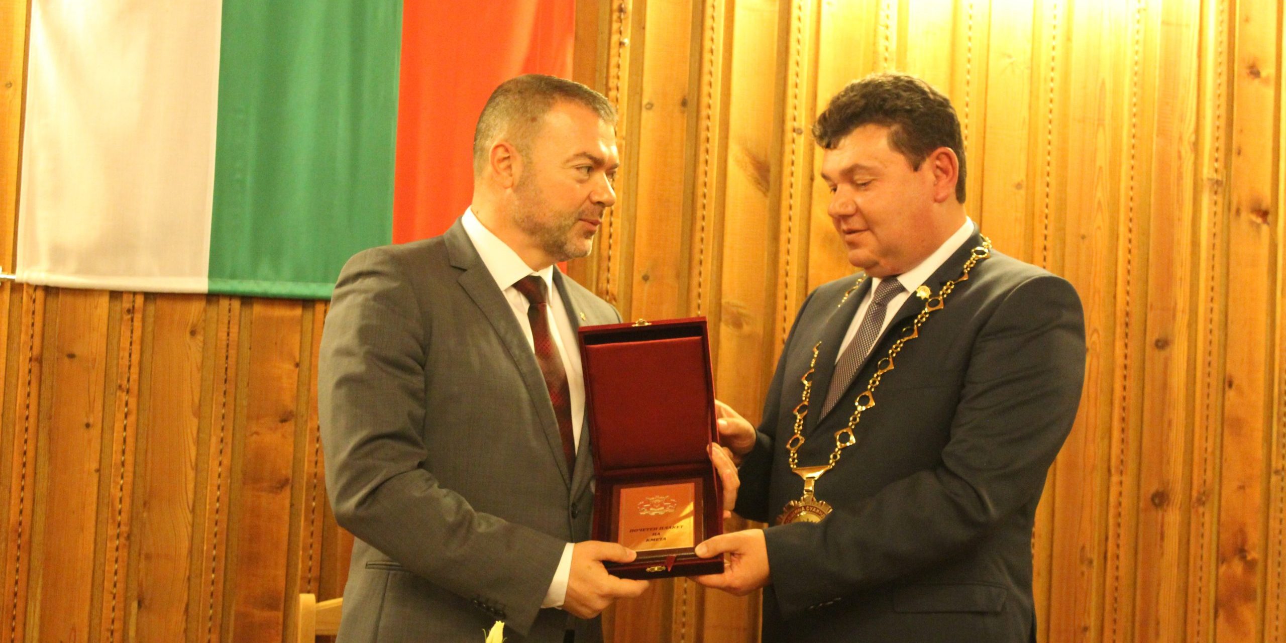 След като положи клетва Пламен Чернев прие от временно изпълняващия длъжността кмет Здравко Гърбов символите на Общината – огърлица и ключ.