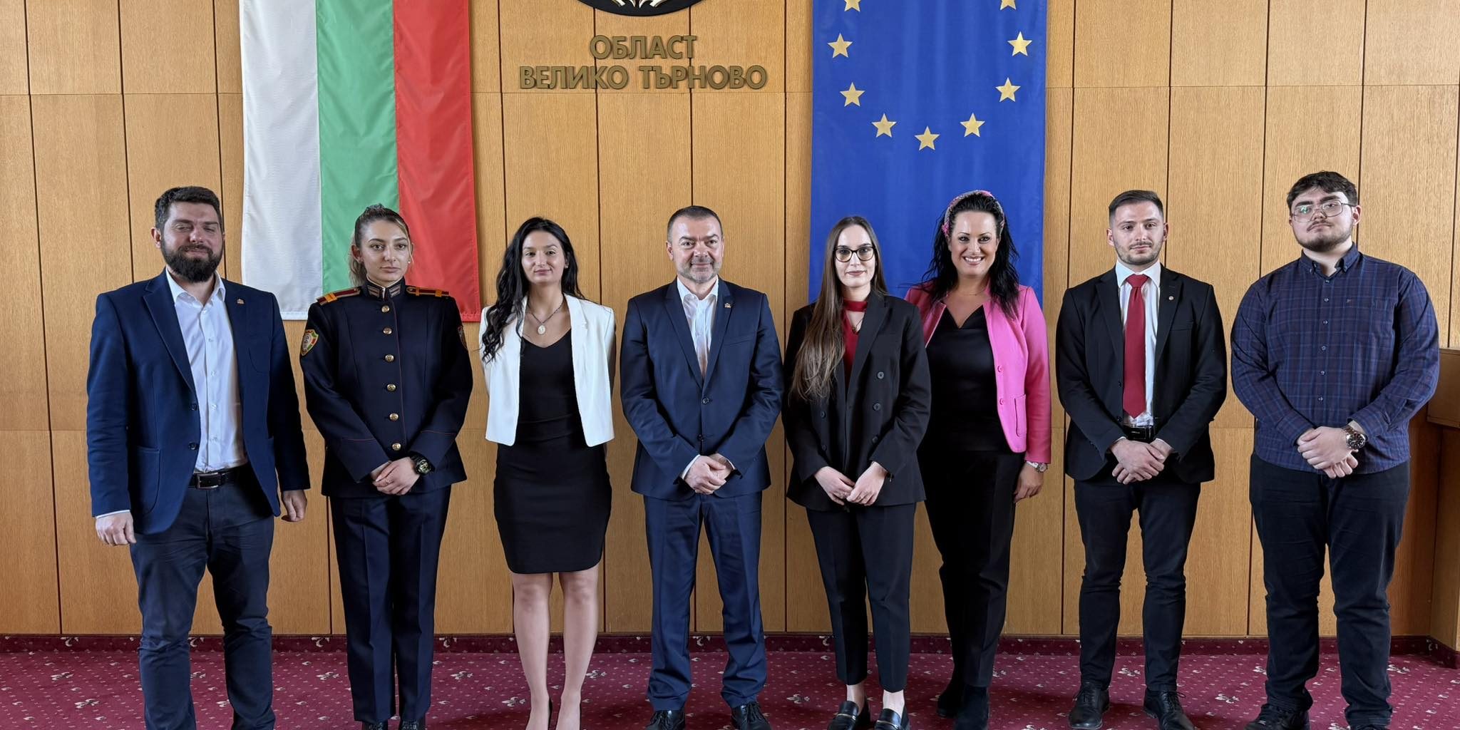 Васил Цонков и Даниела Стоева от Великотърновския университет „Св. св. Кирил и Методий“, Виктория Заркова и Йоан Иванов от Стопанска академия „Димитър А. Ценов“, както и курсант-старшина Зорница Малинова от Националния военен университет „Васил Левски“ се запознаха с основните функции на областния управител и неговия екип. Те им бяха представени от заместник областните управител Юлия Ликоманова – Мутафчиева и Иван Маринов.