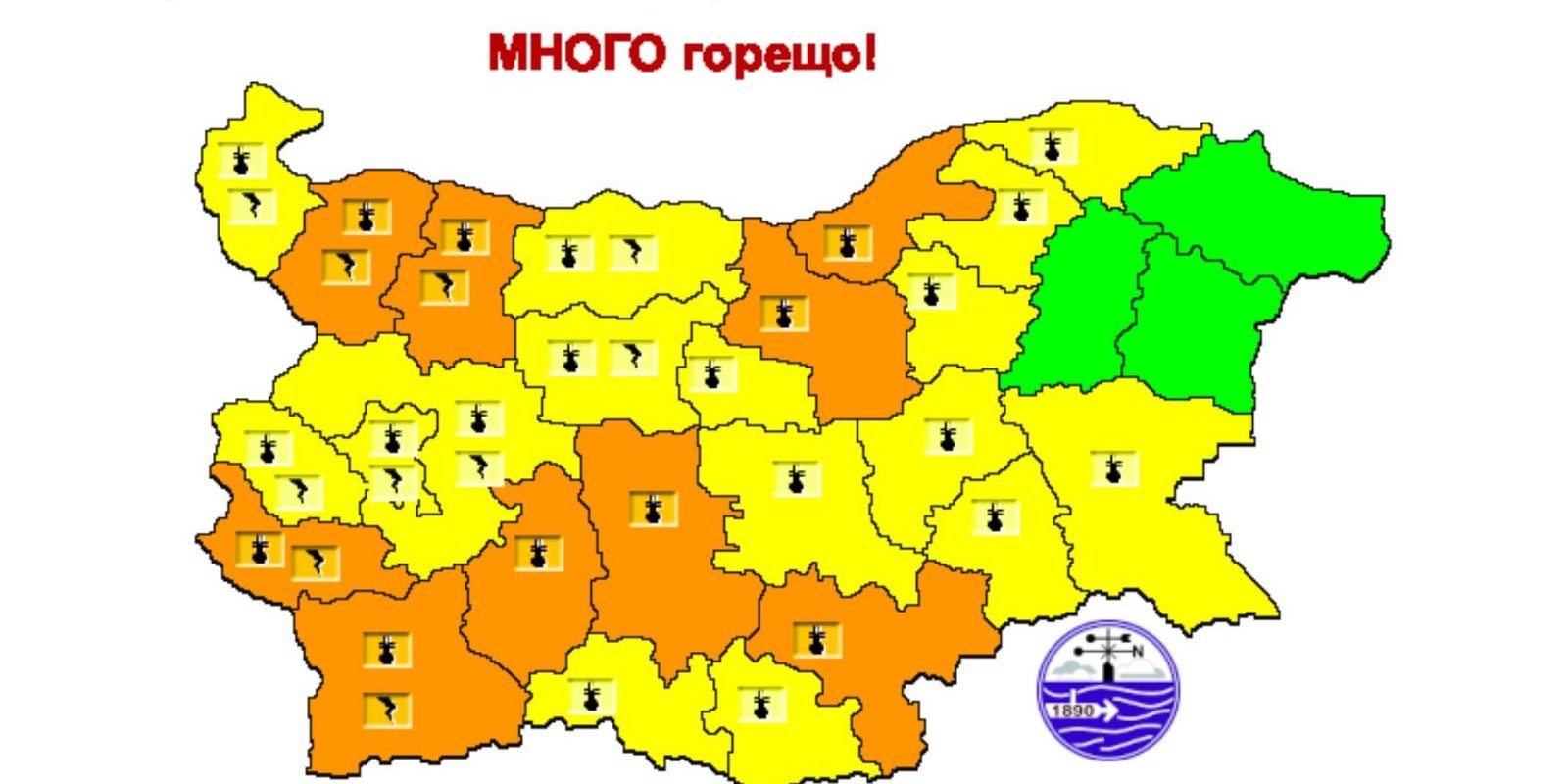 В сила остава и рискът за висока опасност от избухване на горски и полски пожари. За територията на област Велико Търново ще е в оранжев код /предупреждение от втора степен/. Високите стойности, които се очаква да показват термометрите ще са опасни за здравето, особено за децата, възрастните хора и лицата с хронични заболявания. Препоръчва се да се ограничат дейностите на открито, особено в часовете между 11:00 и 17:00 часа. Специалистите съветват още да пием много течности и да избягваме физическите натоварвания.