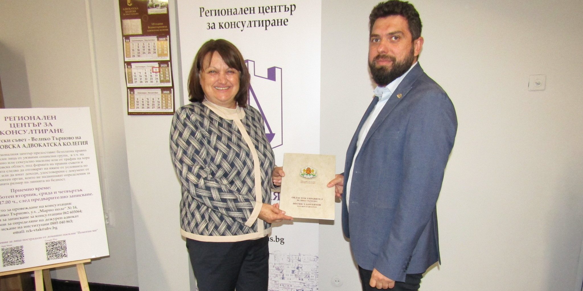 Церемонията на 3 октомври бе част от програмата, с която във Велико Търново се отбелязват 20 години от приемането на Закона за правна помощ в България и на Закона за защита от домашно насилие.
