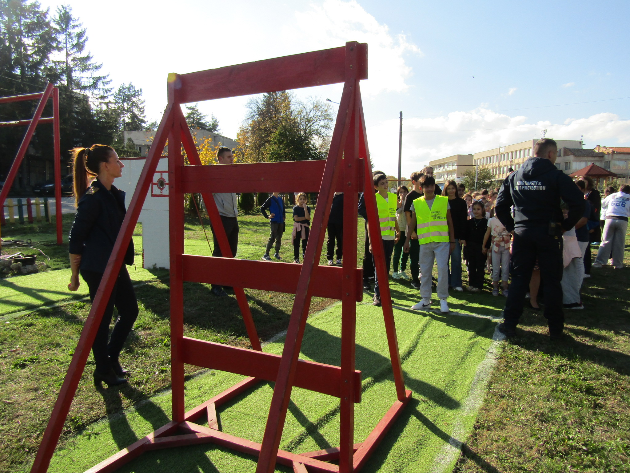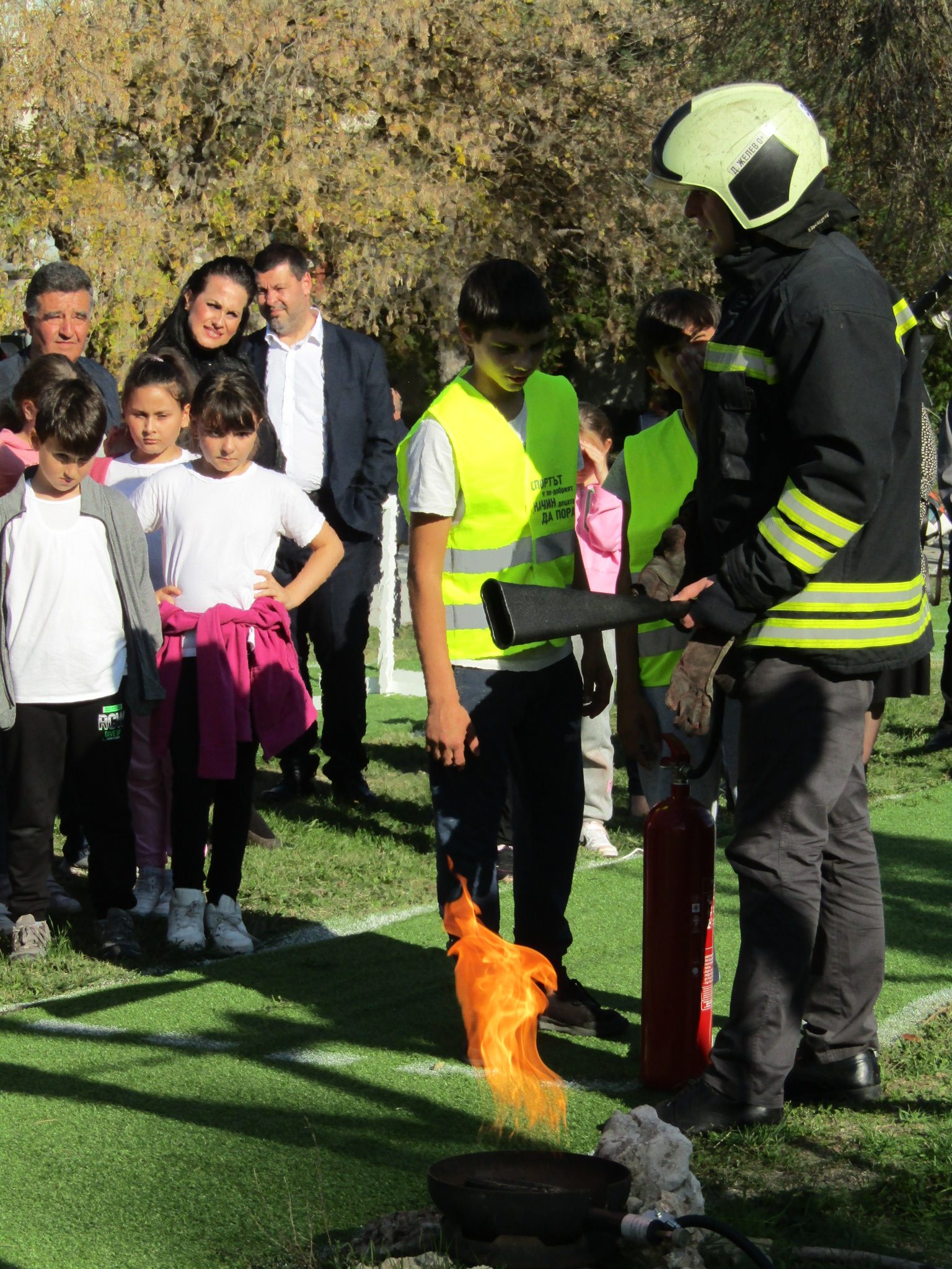 На специализираната площадка по пожарна безопасност с помощта на служителите от РД „ПБЗН“ – Велико Търново децата се запознаха и с правилните реакции при пожари, наводнения и оказване на първа помощ на пострадал.