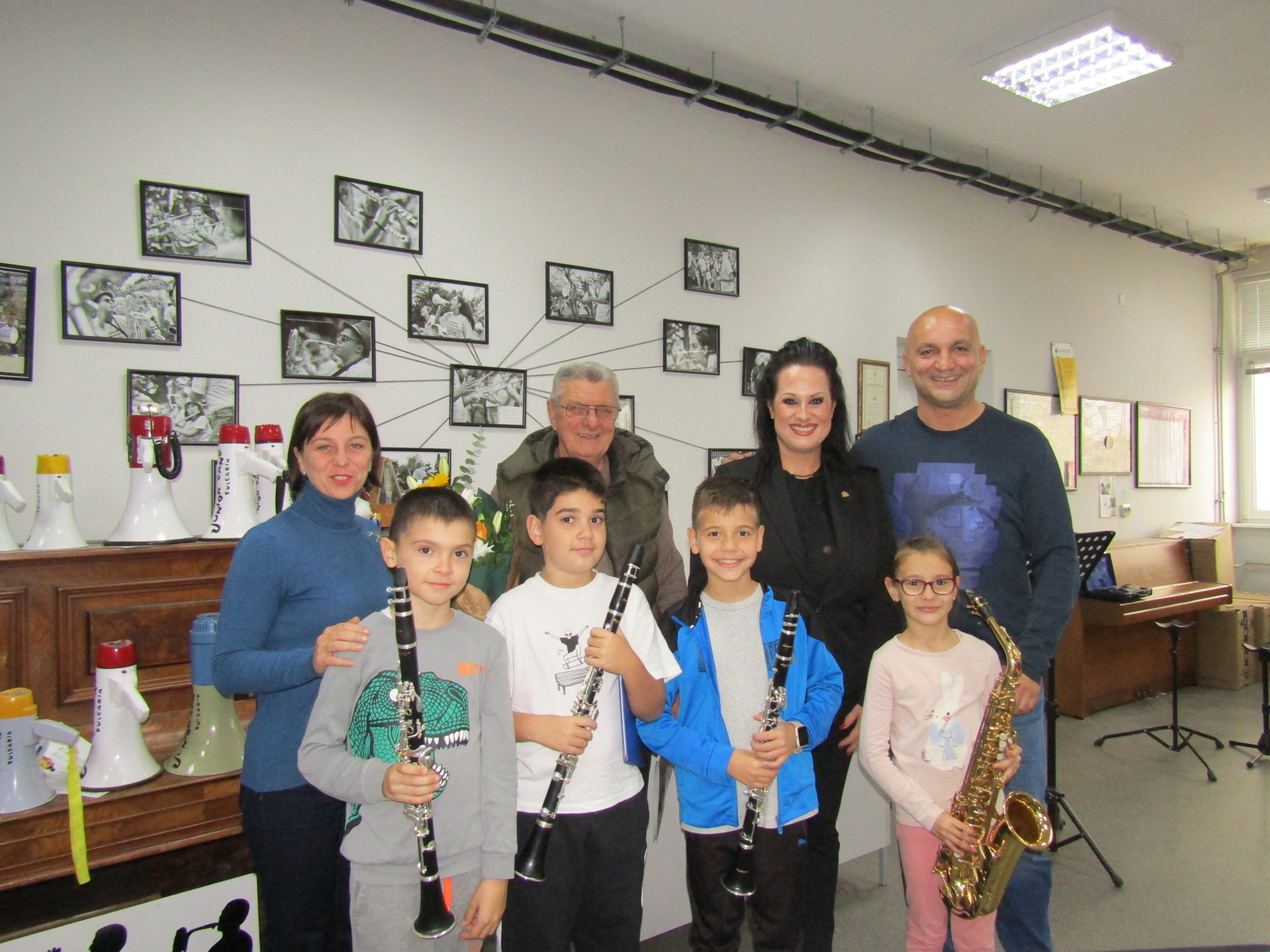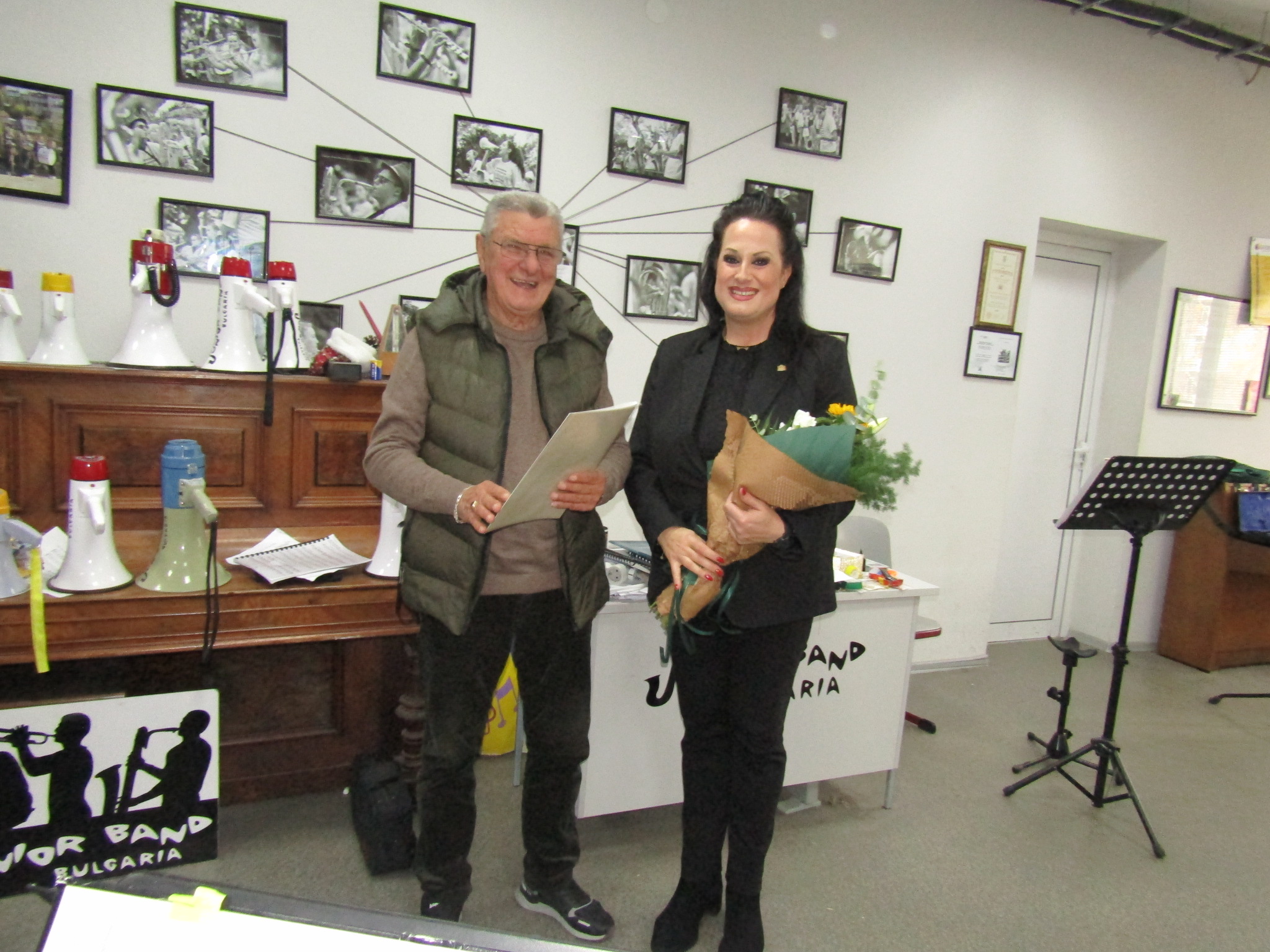 Юлия Ликоманова-Мутафчиева изненада именития кларинетист с поздравителен адрес и красив букет, докато той преподаваше на младите музиканти от „Джуниър Бенд“ в СУ „Емилиян Станев“. На срещата присъстваха директорът на училището Дияна Добрева, ръководителят на ученическия оркестър Йордан Цветанов и техни възпитаници.