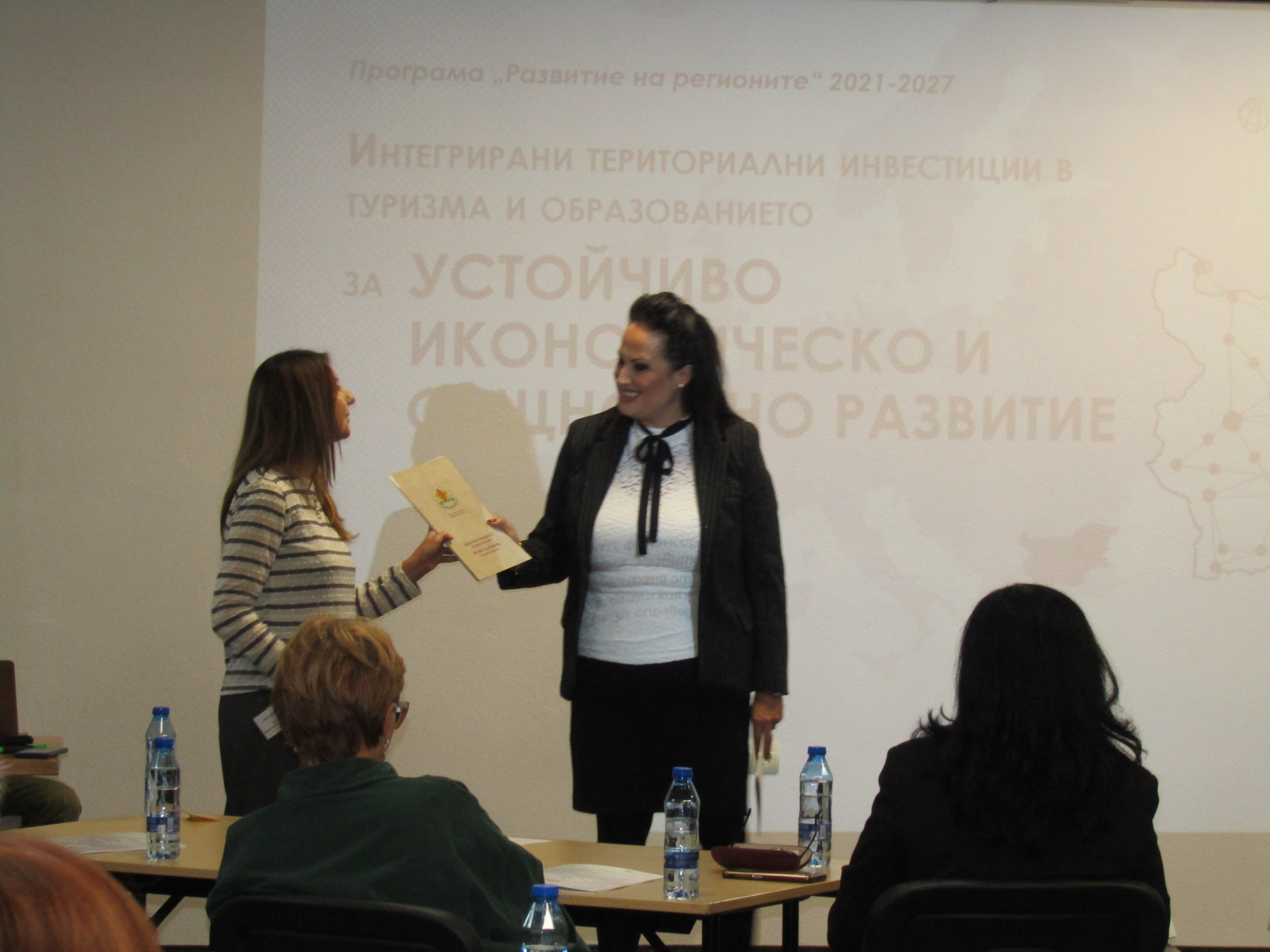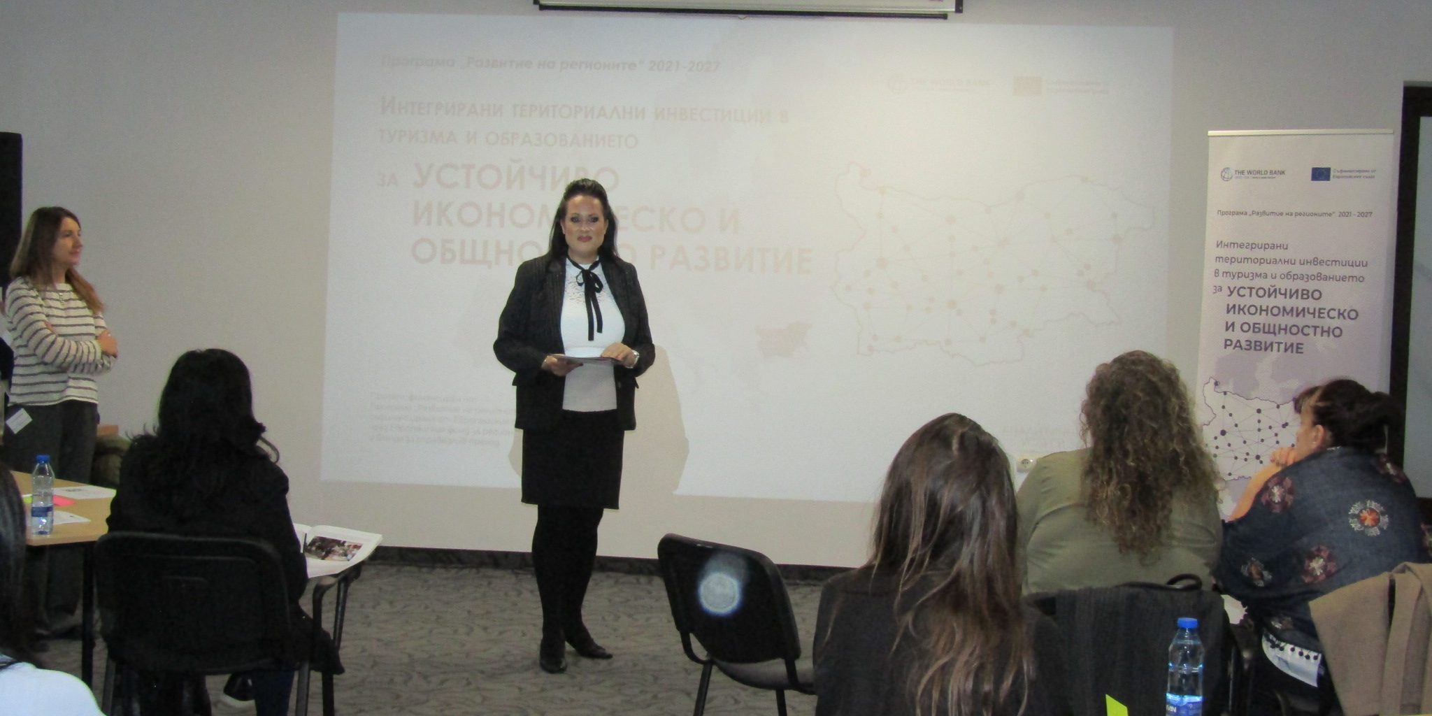 Областният управител Юлия Ликоманова-Мутафчиева откри семинар на тема „Интегрирани териториални инвестиции в туризма и образованието за устойчиво икономическо и общностно развитие“ . Събитието, което събра експерти над 30 експерти, е организирано от Световната банка.