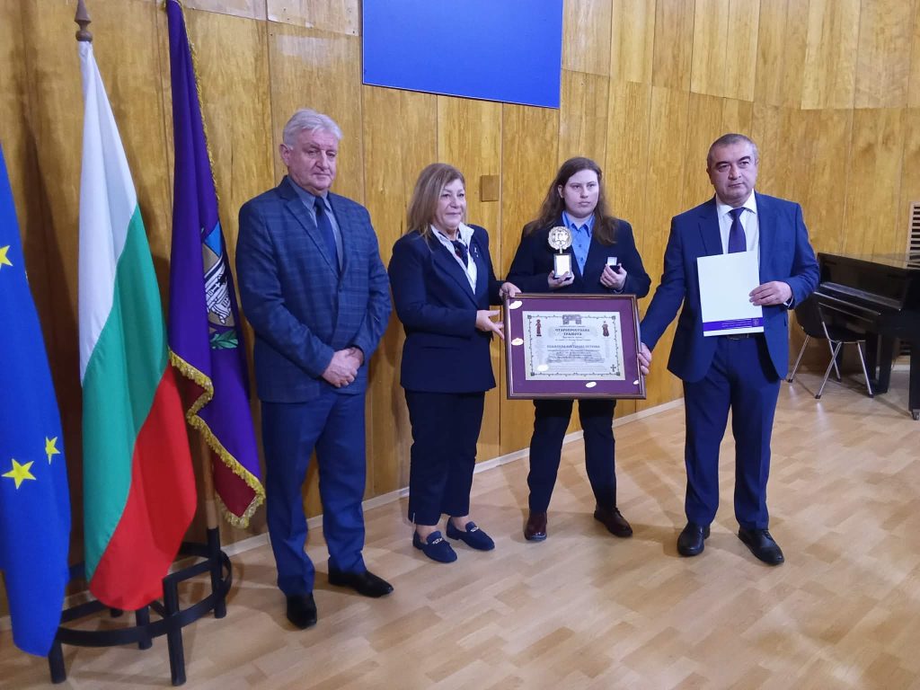 Статуетката й беше връчена от заместник-кметовете проф. Георги Камарашев и Снежана Данева- Иванова, както и от заместник-председателят на Общинския съвет Росен Иванов.
