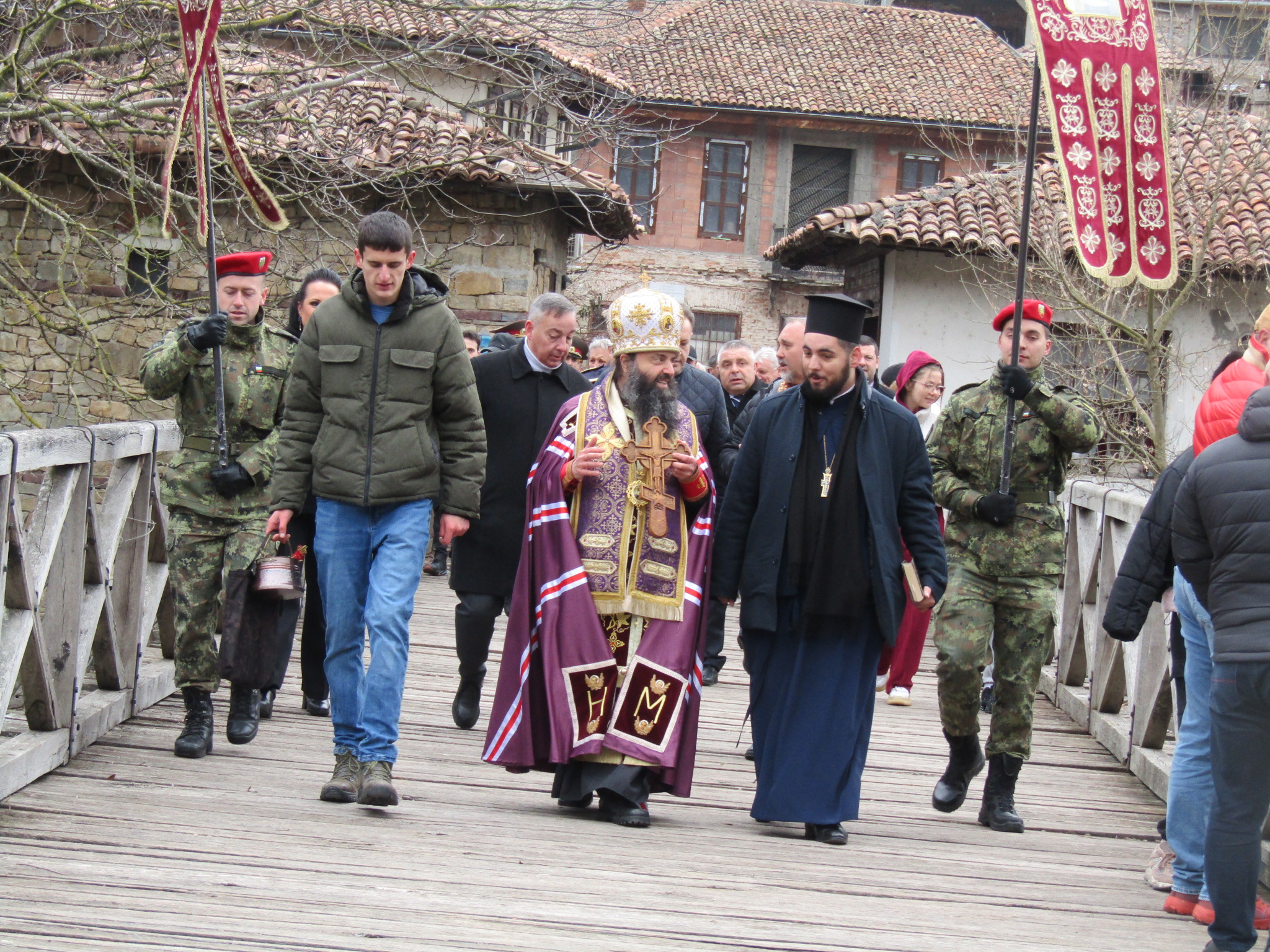 Веднага след църковната служба тръгна литийно шествие, което стигна до площад „Цар Асен I”, където по традиция бяха осветени бойните знамена. От там шествието продължи до Владишкия мост.
