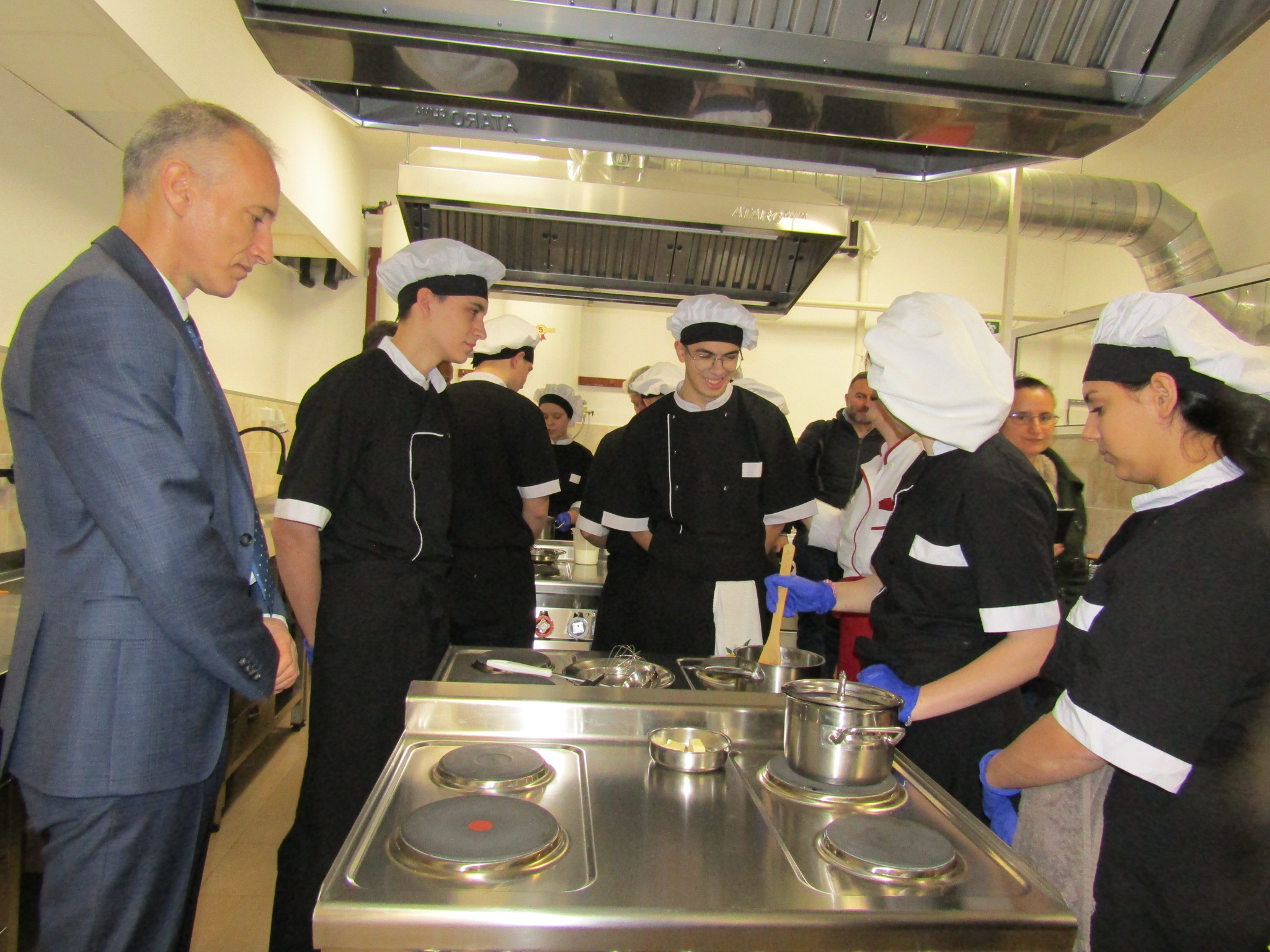 Възпитаниците на гимназията посрещнаха министър Вълчев с кетъринг, лично приготвен от тях и демонстрираха кулинарни умения в училищния кухненски блок.