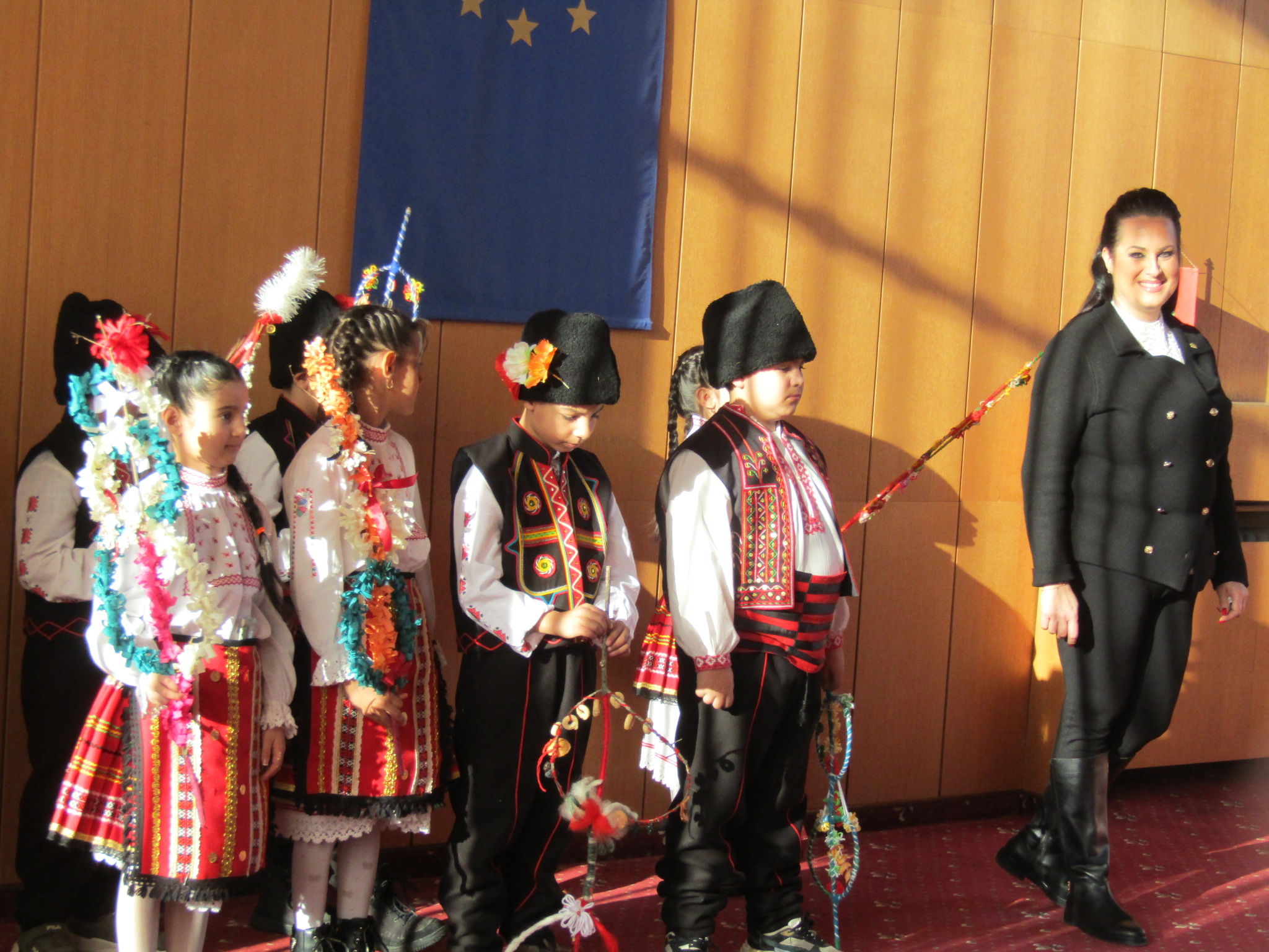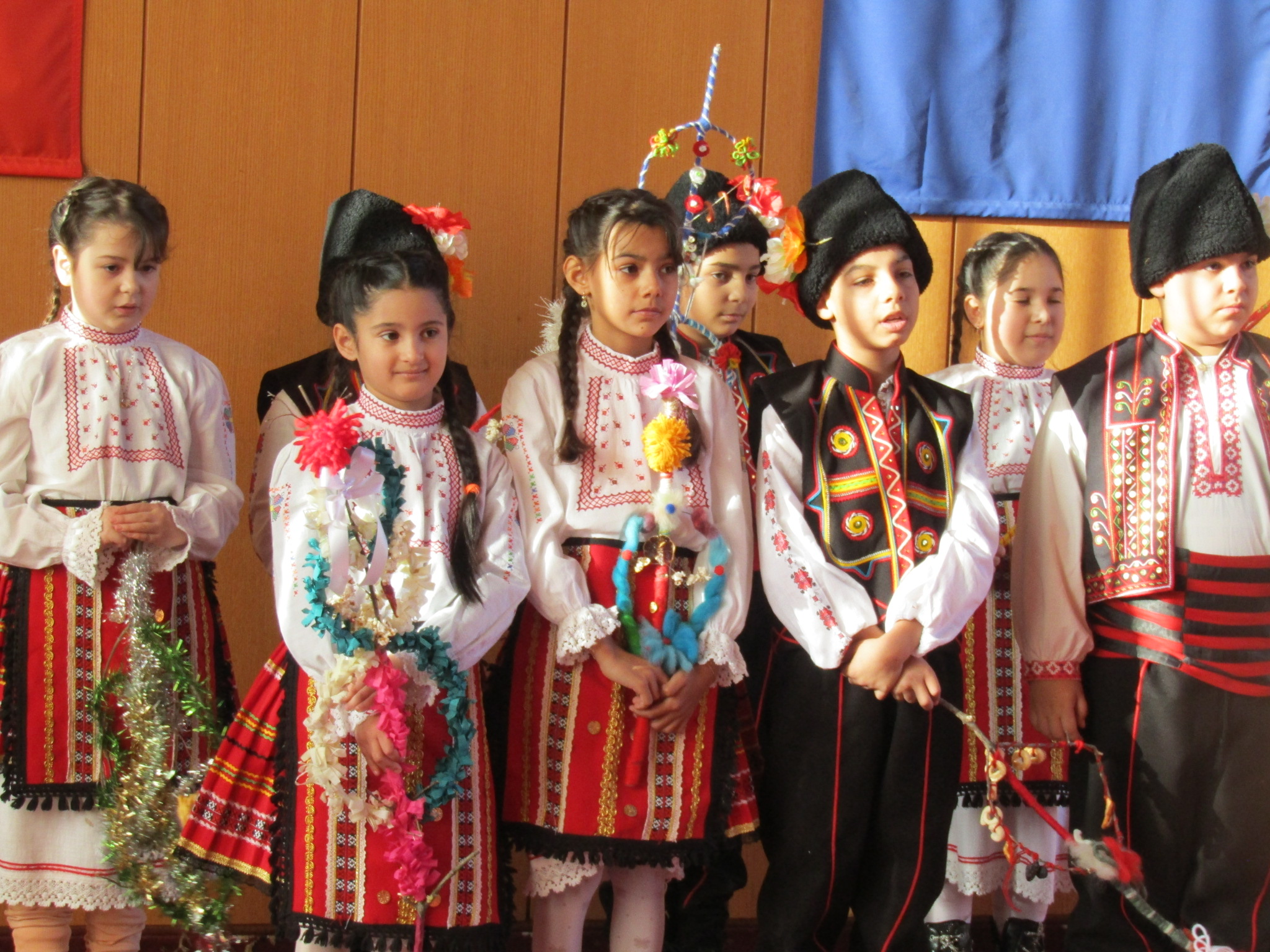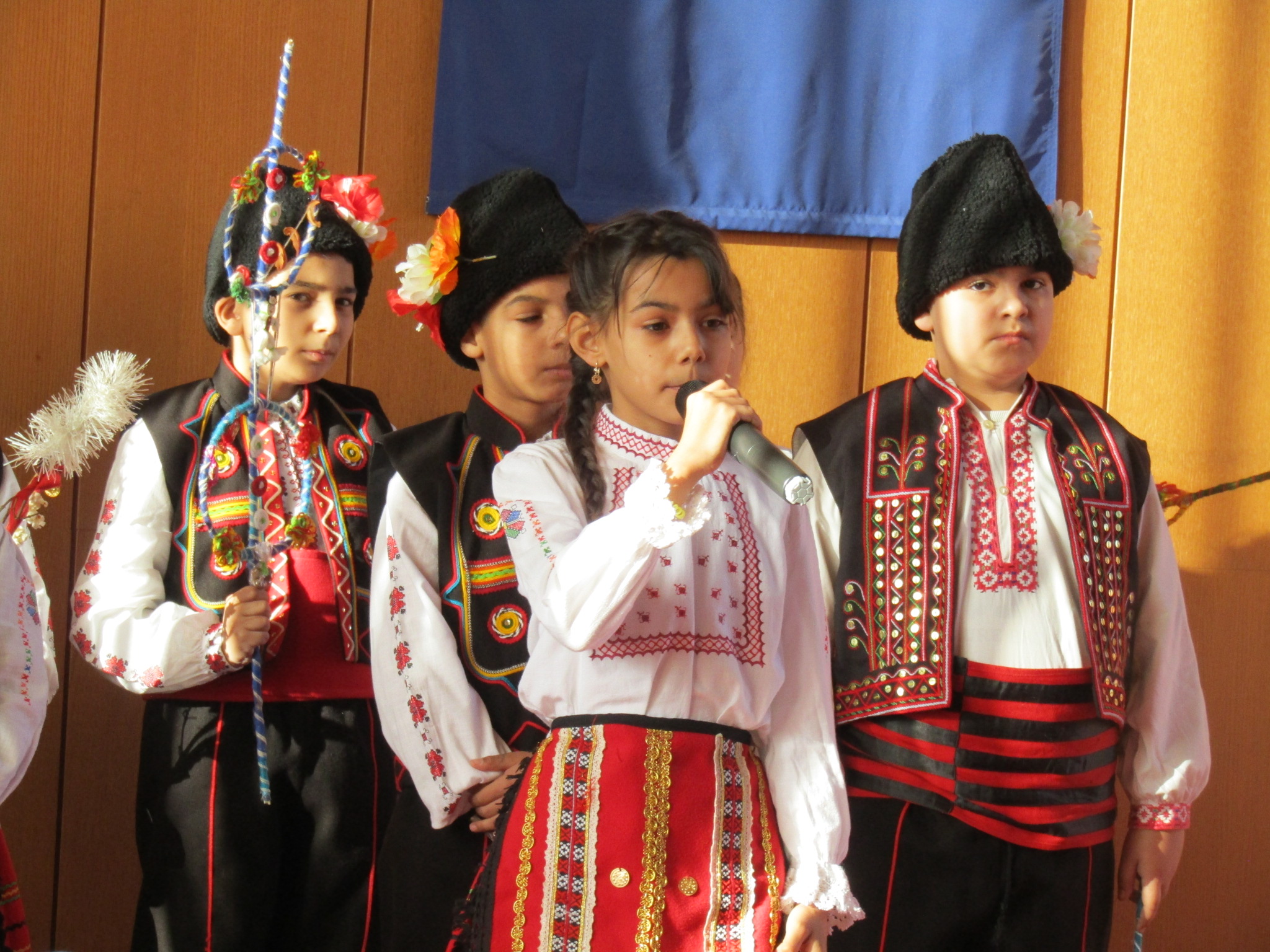 Осемте възпитаниците на училището в Камен от първи и трети клас, демонстрираха обичаите от ромския фолклор, пяха и рецитираха на български и ромски език и отправиха към присъстващите наричания за здраве и късмет като ги сурвакаха с дрянови сурвакници.