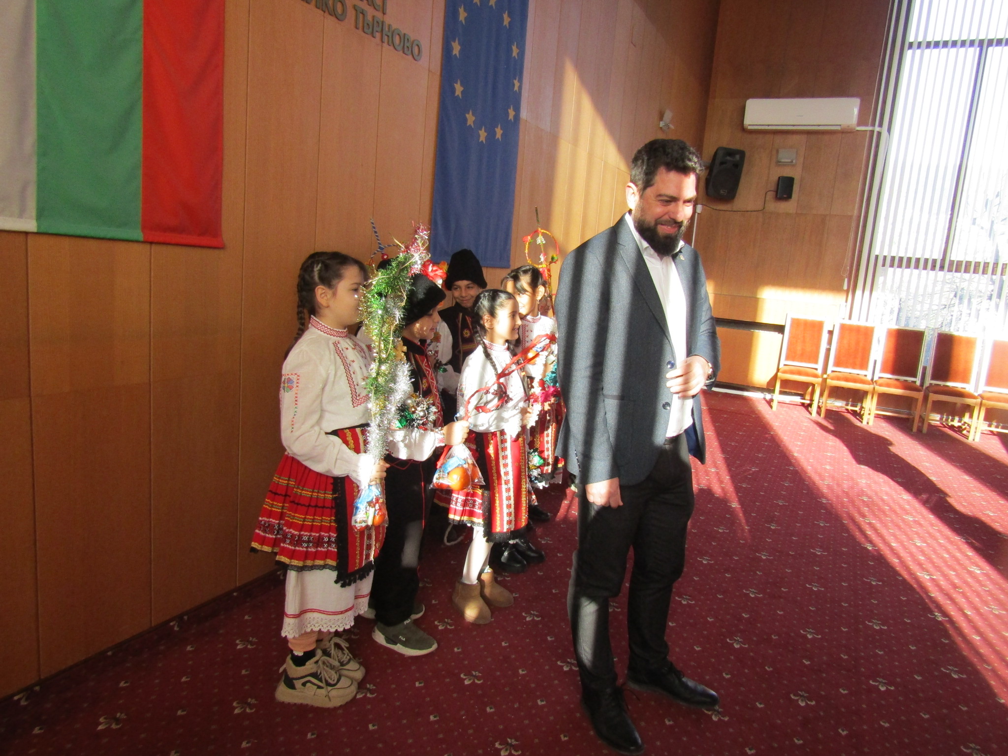 Ученици от СУ „Свети Климент Охридски“ в с.Камен, община Стражица гостуваха в Областната администрация във Велико Търново по случай честването на ромската Нова година-Василица.